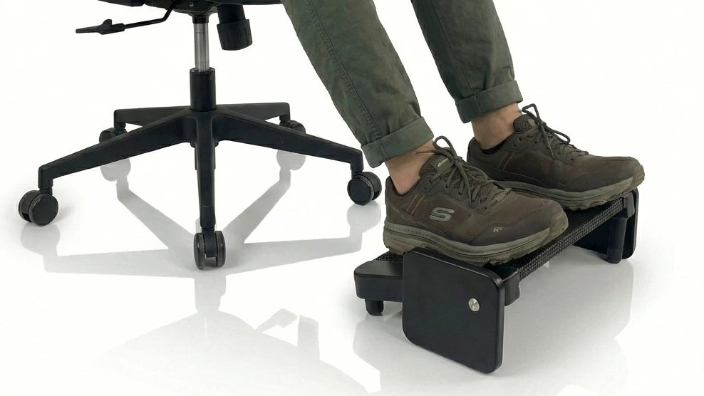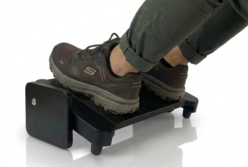 A veces, la solución a un gran dolor es un pequeño ajuste. El cansancio lumbar y la pesadez en las piernas nacen de un error simple: la falta de apoyo. El Descansapiés Serenity es la respuesta esencial de 5D para corregir tu postura de inmediato. Diseñado bajo la filosofía de "menos es más", este soporte te ofrece una plataforma estable que evita que tu cadera se deslice y tu espalda se encorve.